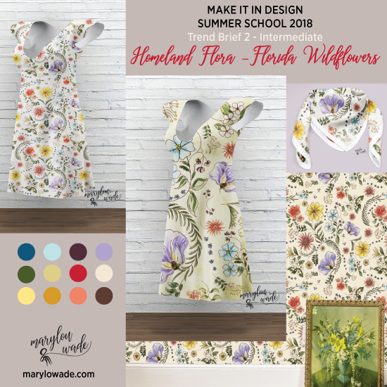 This pattern was designed from Trend Brief Two [Homeland Flora—Wildflowers] in the Make It In Design Summer School 2018 course I recently took. The brief was to design a wildflower pattern, etched and sketched pattern using the following prompts: Be inspired by raw nature, sun soaked earth, organics, textures, fields and meadows Think wild landscapes… Continue reading Florida Wildflowers